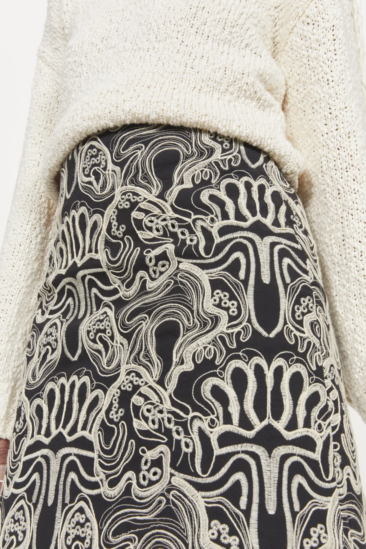 The Piano Skirt Will Add Visual Depth To Summer Outfits. This Fully Lined Style Is Made To An A-Line Shape From An Organic Cotton Fabric That Is Exclusive To Rodebjer. Its Clean Silhouette Creates A Canvas For An Embroidered Version Of The Seasonal Cosmic Motif, And It Fastens To The Side With A Discreet Zip Closure.