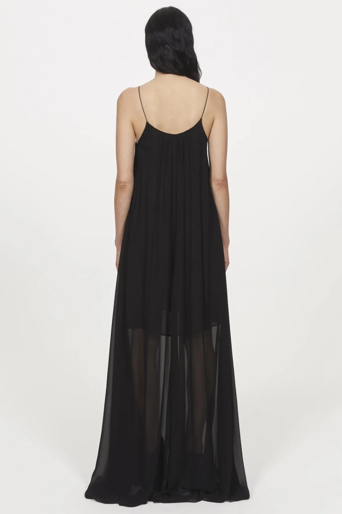 Hanging From Slender Straps, The Solin Is Designed With Ease Of Movement In Mind. Presented In Timeless Black, It Is Made From Fsc-Certified Viscose Chiffon That Falls Down The Figure To Full Gathers, And Is Detailed With Raw Edging At Its Maxi-Length Hemline.